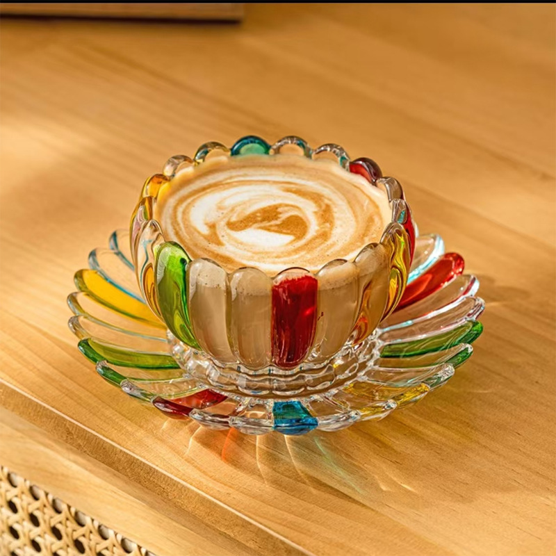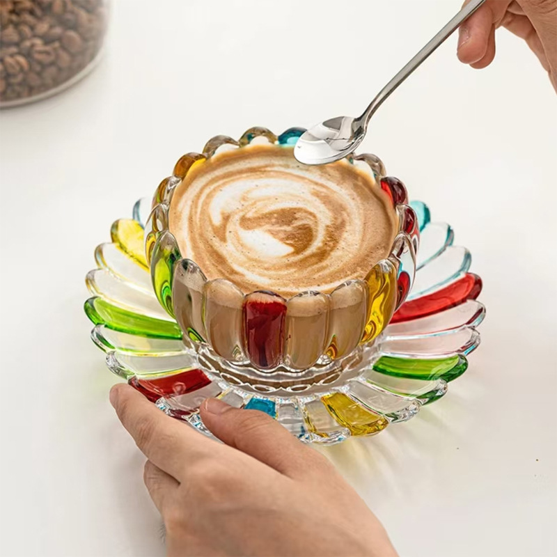 Texturae floralis dimensionis design. Utriusque poculi ac patellae textura petalorum trium dimensiva clare definita, dum os latum altiorem aestheticam auget et superficies non lapsus praebet.
